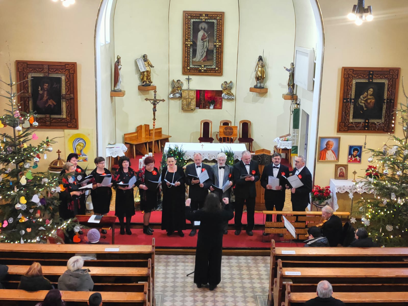 Na zakończenie czasu kolędowego, w hażlaskim kościele nastąpiło uroczyste Pożegnanie Żłóbka. Wystąpił chór seniorów Białe Echo, działający przy Klubie Seniora w Gminnej Bibliotece Publicznej w Hażlachu. Zaprezentował kolędy i pastorałki z różnych stron Polski. Chórem dyryguje pani Katarzyna Broda-Firla.