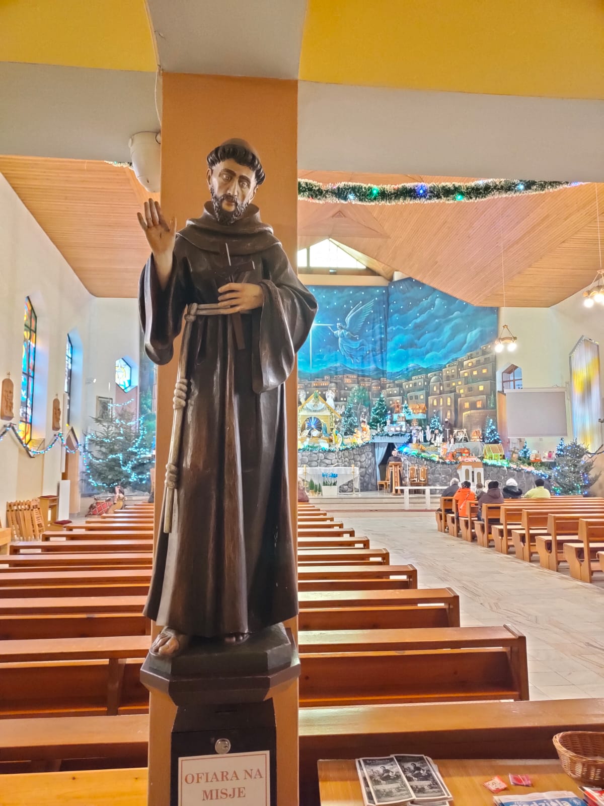 Ostatnim punktem wyjazdu stał się kościół w Górkach Wielkich. Tamtejsi franciszkanie z rozmachem kontynuują zwyczaj wprowadzony przez swojego założyciela - od lat przygotowują szopkę, która ma przybliżać wiernym tajemnicę Bożego Narodzenia. Gwardian klasztoru, o. Ignacy, opowiedział o góreckim kościele. Przybliżył też słuchaczom powód ustanowienia przez Ojca Świętego Leona XIV roku 2026 jako Roku św. Franciszka: w tym roku przypada 800-lecie "przejścia do nieba" świętego z Asyżu.